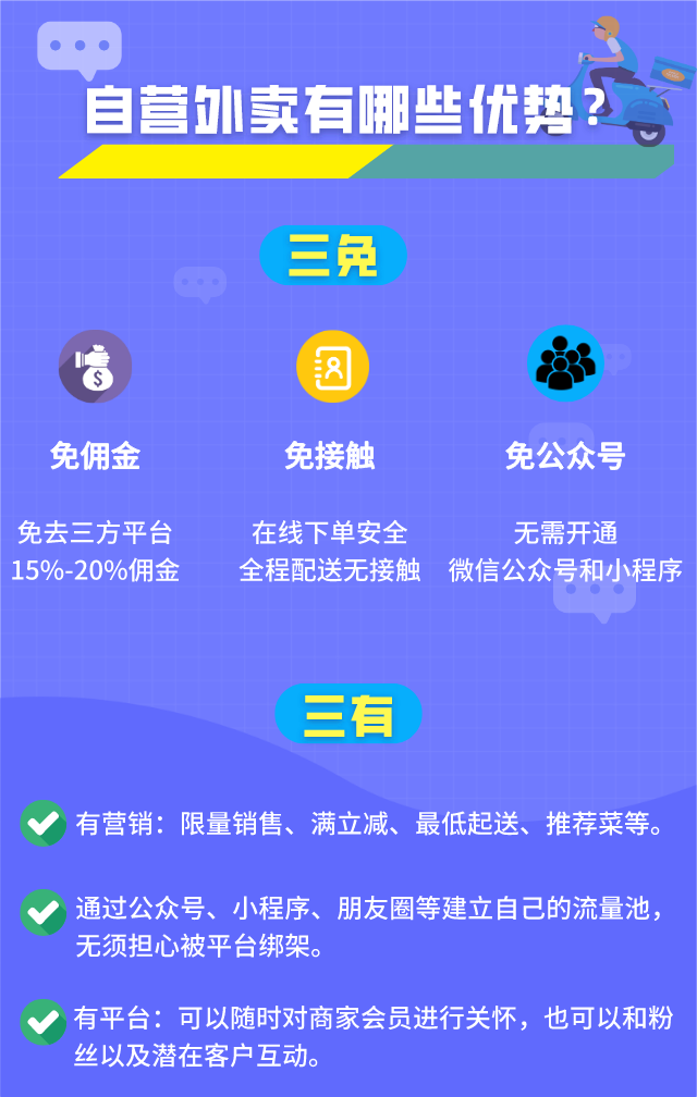 疫情之下,许多商户为维持运营,选择外卖业务。但在外卖平台高抽成的状况下,许多商家有苦难言。商家利润被过度挤压,很多商家想要建立自己的外面平台,无奈没有外卖平台的高流量,始终无法轻易摆脱对外卖平台的依赖,没有了三方外卖平台的流量支持,自营外卖要如何获取流量呢?